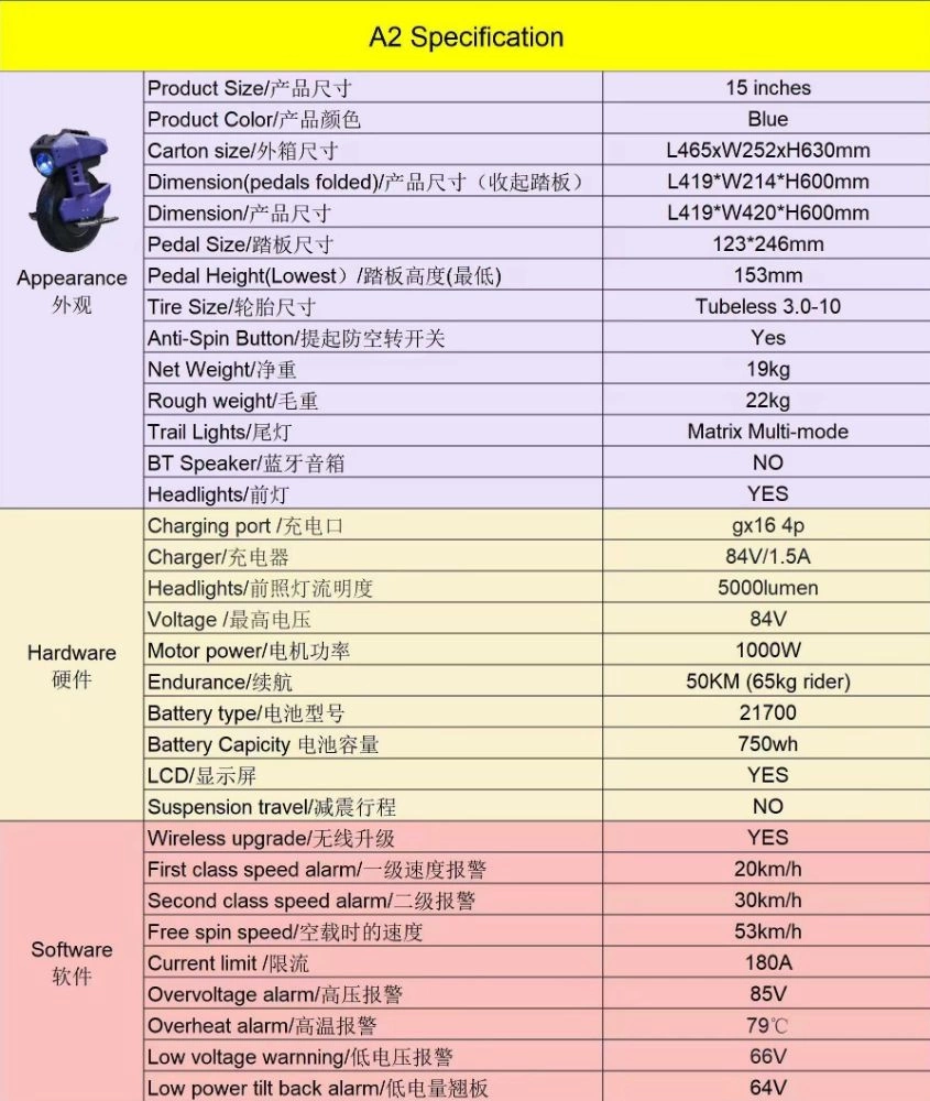 Begode a utilizadores sabe uma ou duas coisas sobre o que deseja e, com o modelo A2, excedeu-se em todos os pormenores. Está classificada para uma elevada resistência à água, pelo que os aguaceiros inesperados não vão abalar o seu espírito. Pode pedalar com confiança. O coração da A2 é a sua unidade de tração de 1000 watts, uma maravilha da engenharia EUC que equilibra potência e elegância. Os pneus todo-o-terreno de 15 polegadas proporcionam todo o binário de baixa potência que deseja. Quer esteja a fazer compras na esquina, a ir para o trabalho ou apenas a dar um passeio pelo parque, a A2 tem a coragem de o levar até lá com um sorriso no rosto