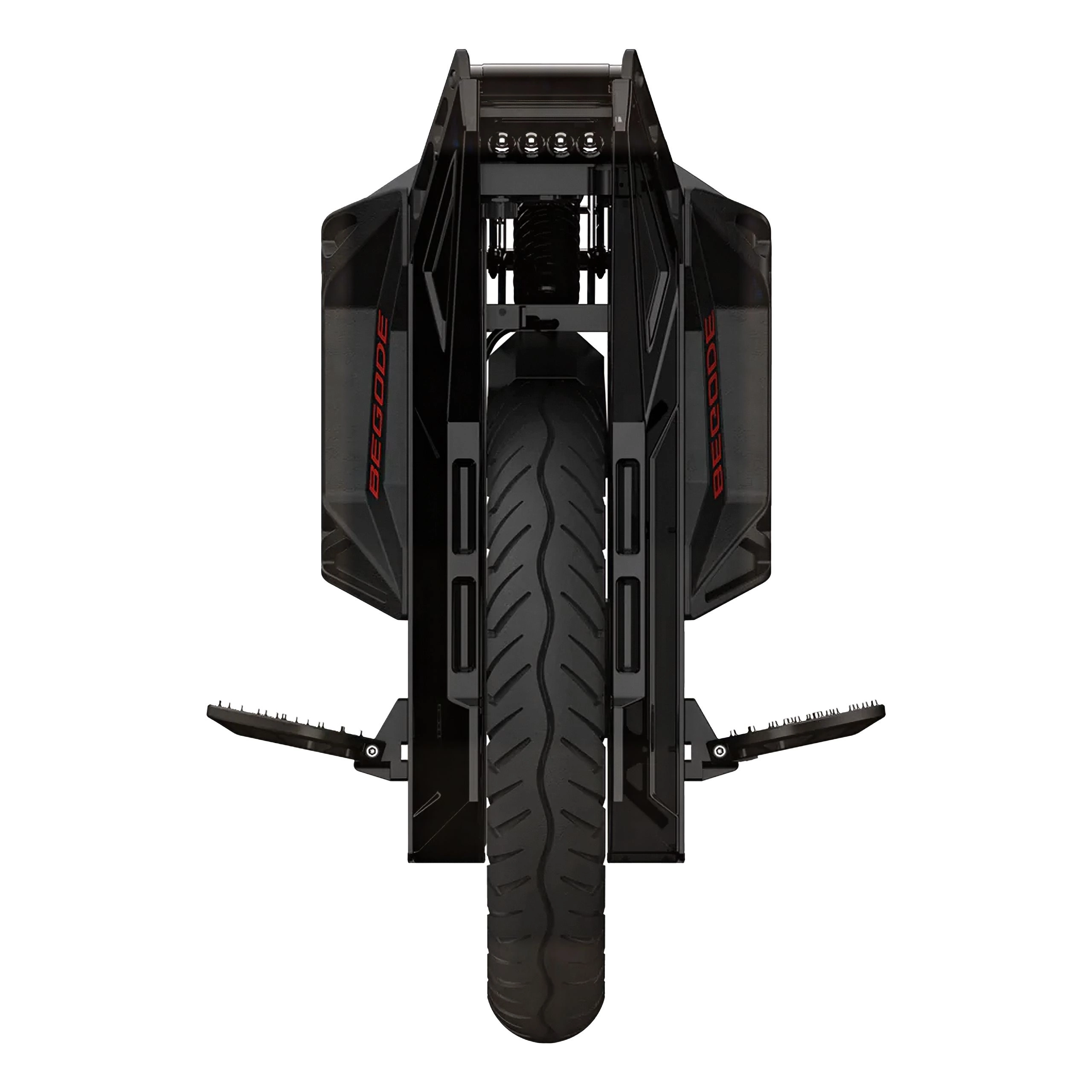 Sinta cada solavanco a suavizar-se embalado em com o sistema de amortecimento de quarta geração da Begode. O amortecedor de molas com amortecimento bidirecional proporciona-lhe a sua bolha pessoal de conforto enquanto se desloca pela cidade ou pelos trilhos. Os pedais com espigões XL sob os pés significam que está preso e pronto para rolar, independentemente do terreno. Navegue com facilidade e domine o terreno, cortesia do amortecedor atualizado da Begode. Com uma mola de 130 mm, um eixo e uma haste de pistão mais resistentes e um amortecimento bidirecional personalizável, obtém uma condução suave e afinada. Quer esteja a correr por uma pista, a apanhar ar ou a enfrentar trilhos acidentados, vai manter-se confortável e no comando a cada passo do caminho
