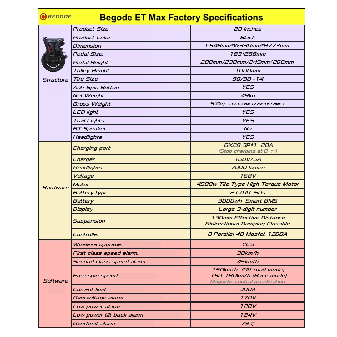 Prepare-se para rasgar os trilhos de terra com o Begode ET Max, um dispositivo que reescreve as regras dos monociclos eléctricos. Com as suas jantes de 20 polegadas - preparadas para pneus de estrada e todo-o-terreno - esteé o seu passe de acesso total para andar sem limites