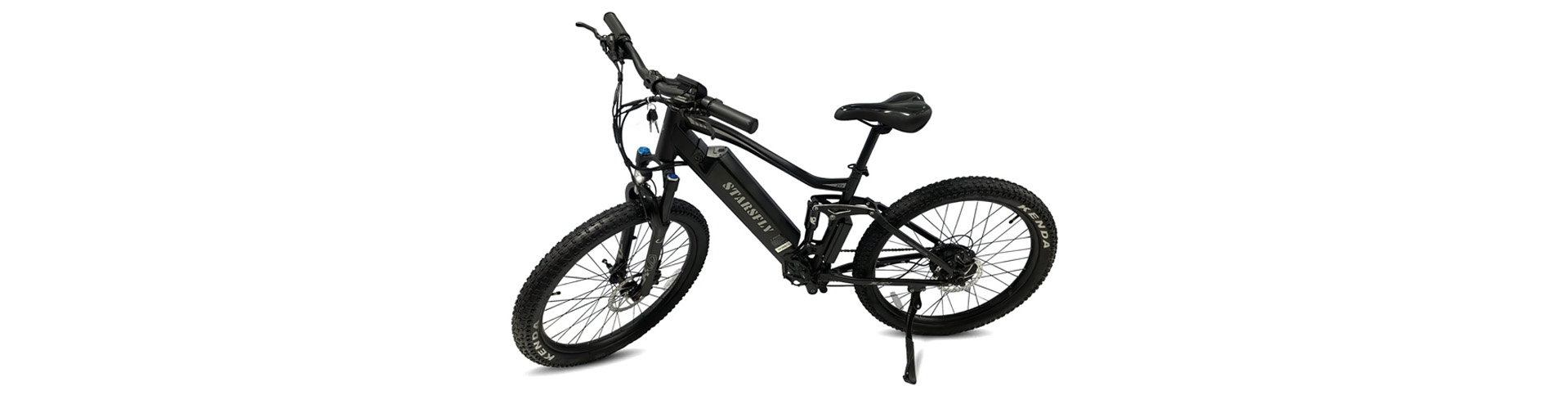 O quadro leve em liga de alumínio e os pneus Kenda 27,5" x 3,0" proporcionam uma estrutura robusta e ágil, pronta para enfrentar diferentes condições com facilidade, enquanto o design elegante acrescenta uma estética moderna.
