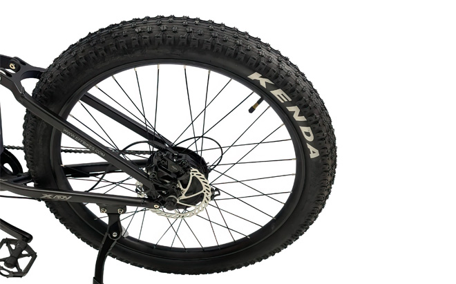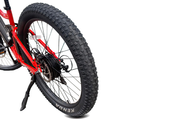 Os pneus Kenda 27.5'' x 3.0'', juntamente com as jantes de liga leve de parede dupla, oferecem uma excelente tração e durabilidade, contribuindo para a resistência e longevidade gerais da bicicleta.