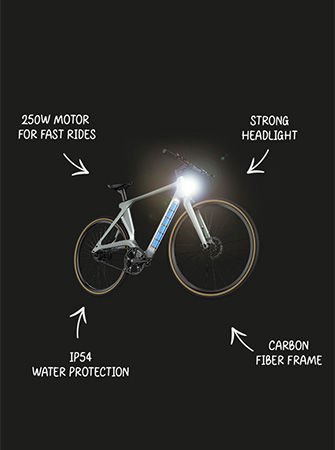 A bicicleta adapta-se a utilizadores de 160 cm a 205 cm (5'3 ft a 6'9 ft) de altura através dos seus componentes ajustáveis e três tamanhos de espigão de selim. O espigão do selim aerodinâmico em fibra de carbono está disponível em três comprimentos (M-14 polegadas/355 mm, L-15,2 polegadas/385 mm, XL-16,3 polegadas/415 mm) para garantir a adaptação a diferentes condutor alturas. A largura do guiador em fibra de carbono de 25,20 polegadas (640 mm) proporciona um controlo seguro, mantendo o perfil minimalista da bicicleta