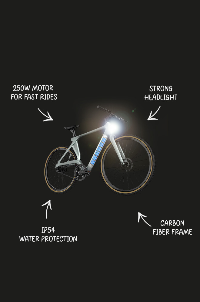 A Fiido Air Carbon Fiber é uma bicicleta eléctrica excecionalmente leve construída em torno de um quadro totalmente em fibra de carbono. Com apenas 13,75 kg, esta bicicleta eléctrica urbana combina materiais de primeira qualidade com um design inteligente para criar uma bicicleta eléctrica discreta com o aspeto e a sensação de uma bicicleta tradicional.