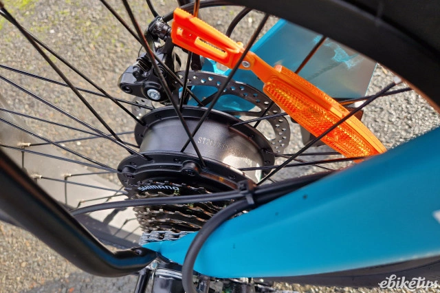 O motor sem escovas permite que a bicicleta atinja uma velocidade máxima de 48 km/h (30 mph), em conformidade com os regulamentos da UE. Garante uma condução suave e fiável em colinas íngremes e terrenos acidentados.