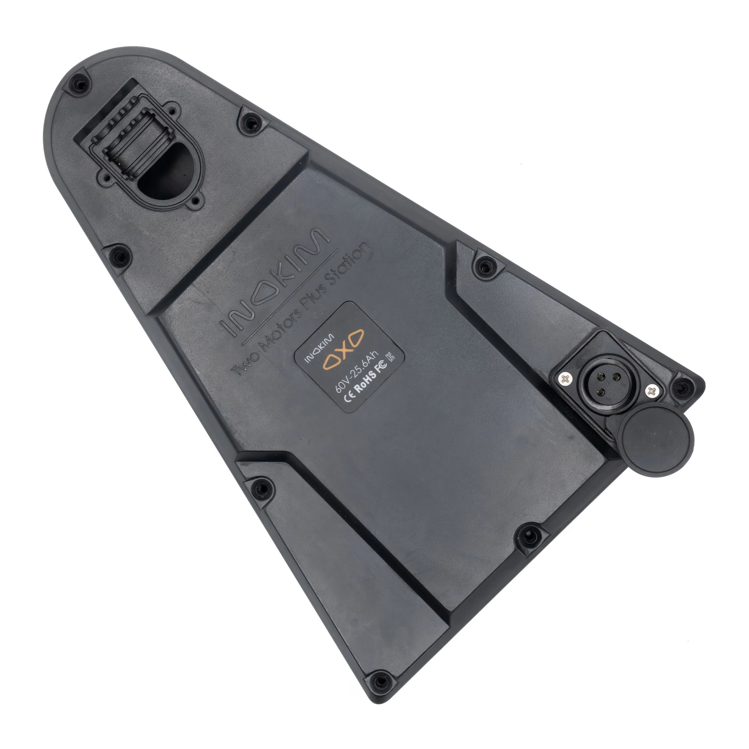 A caixa de plástico do controlador com uma porta de carregamento para o Inokim OXO garante a segurança do controlador e a funcionalidade de carregamento do trotinete eléctrica.