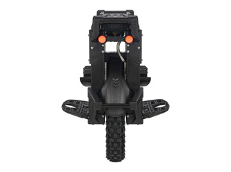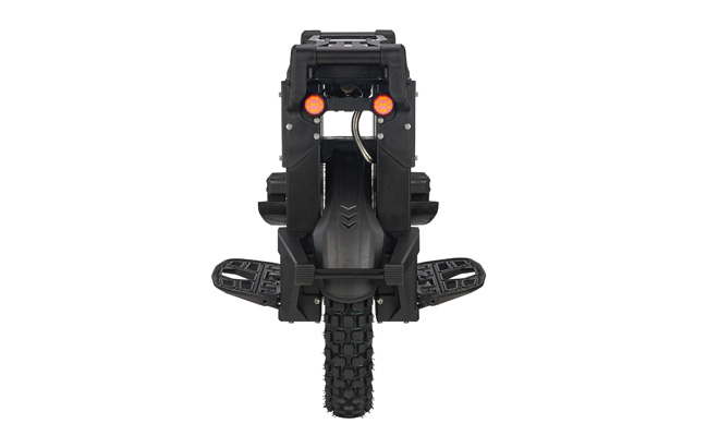A estrutura é feita de liga de magnésio leve mas resistente. O computador no interior observa cada parte da bateria e mostra-lhe o que está a acontecer num ecrã transparente. A luz frontal é super brilhante com 2500 lúmenes, iluminando toda a estrada à sua frente, enquanto as luzes traseiras brilhantes garantem que os carros o vêem.