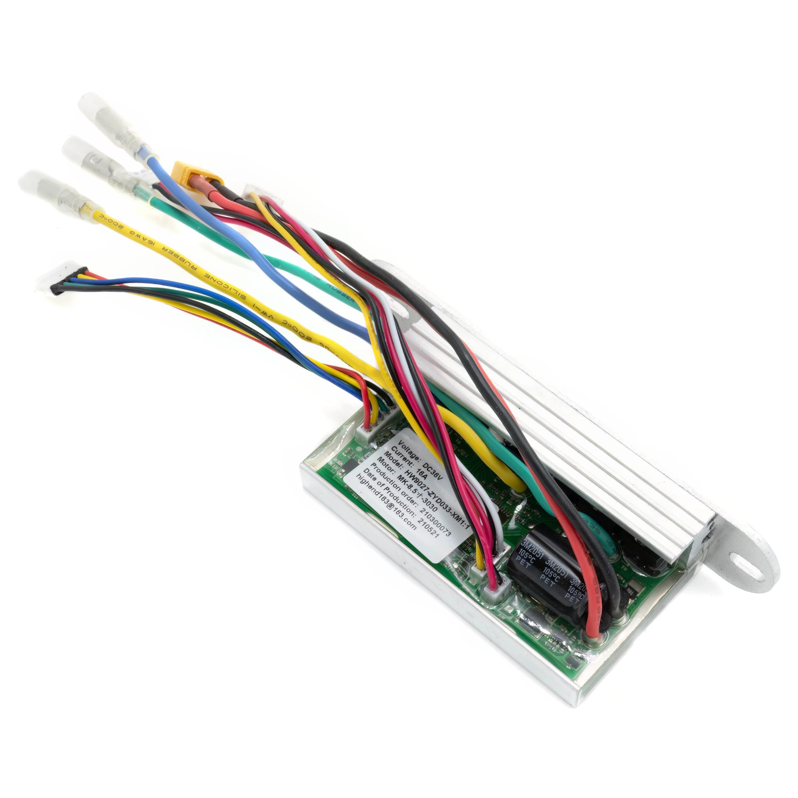A placa-mãe verifica constantemente a temperatura do motor e da bateria, protegendo o veículo de danos causados por sobreaquecimento ou sobrecarga. Se o trotinete eléctrica encontrar alguma avaria, o controlador detecta os erros e apresenta-os no ecrã, simplificando a resolução de problemas profissionais.