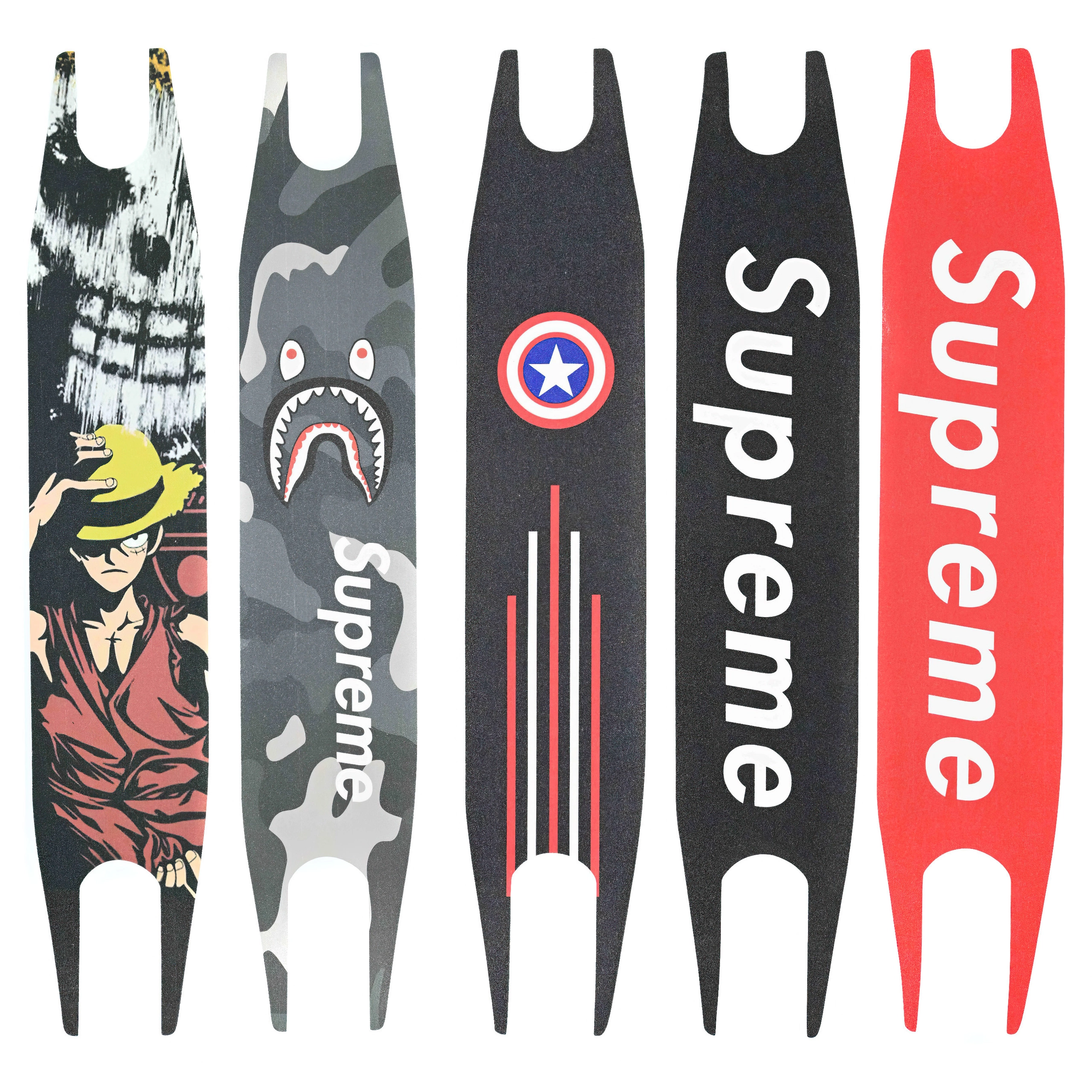 O tapete para pés está disponível em 5 padrões intrigantes que são simultaneamente modernos e sofisticados. Este tapete é uma afirmação de moda, reflectindo o seu estilo único. Escolha o seu desenho preferido: Supreme Grey, Supreme Black, Supreme Red, Captain America ou Anime One Piece.
